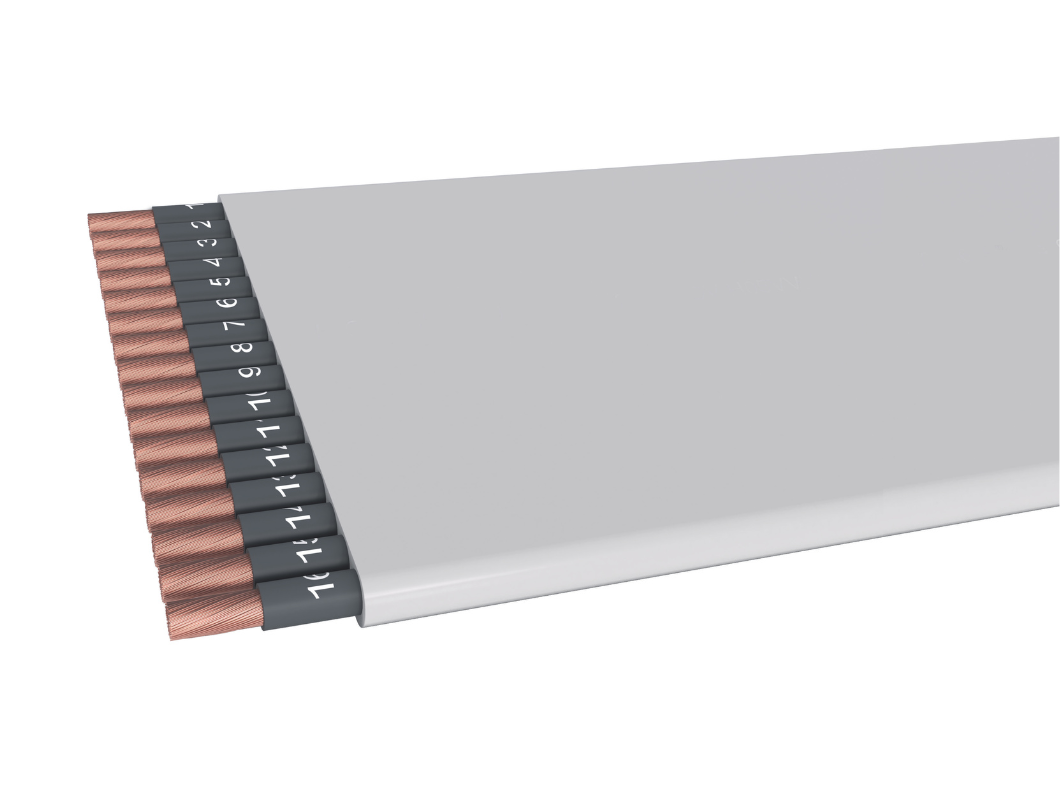 Cavo H05VVH6-F, cavo multipolare, piatto, flessibile, in rame nudo; H05VVH6-F è un cavo isolato in PVC, sotto guaina di PVC.