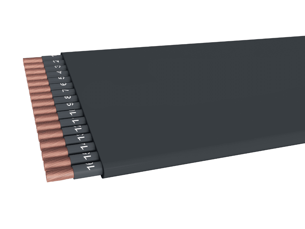 Cavo piatto flessibile multipolare, con isolamento XLPE e guaina TPV, buona resistenza all’olio e ai raggi UV