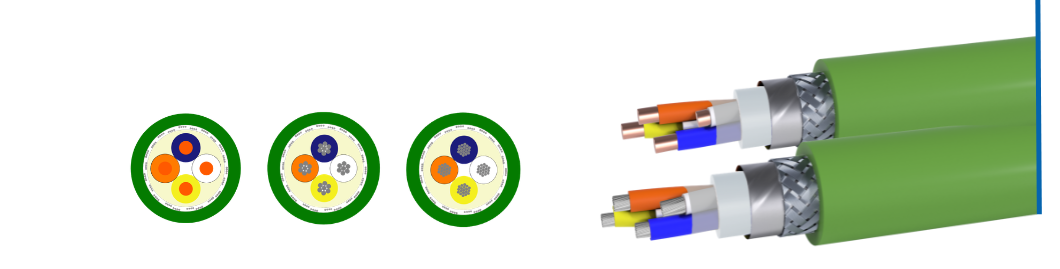 ●PROFINET H UL – Type C (AWM STYLES 10493/20233): Il nostro top di gamma per le condizioni operative più estreme. Questo cavo con guaina in PUR è studiato per la posa mobile in catena portacavo in condizioni gravose. Oltre a essere resistente all’olio e non propagante la fiamma , è una soluzione senza alogeni (Halogen free) per la massima sicurezza ambientale (80°C/300 V).